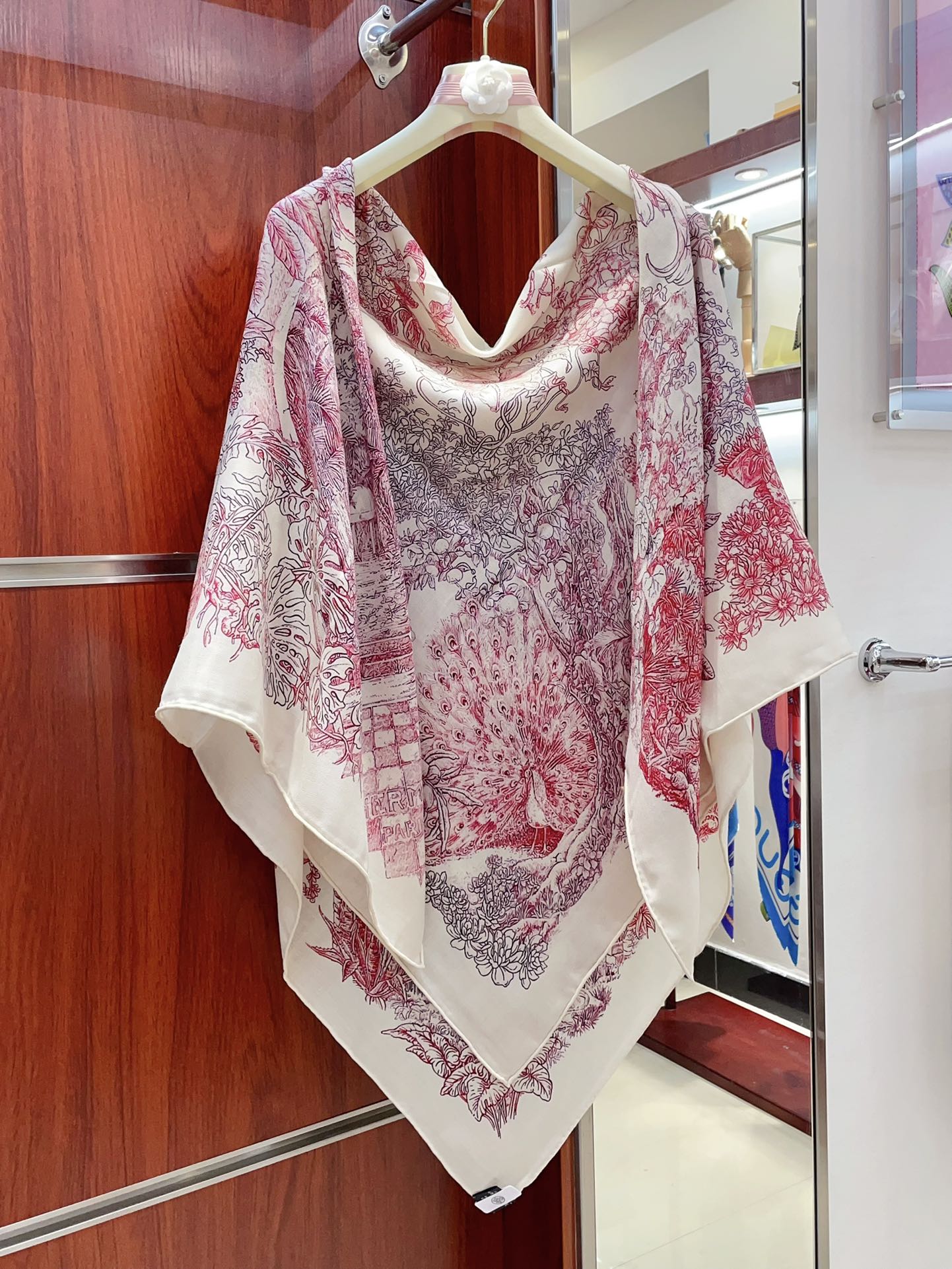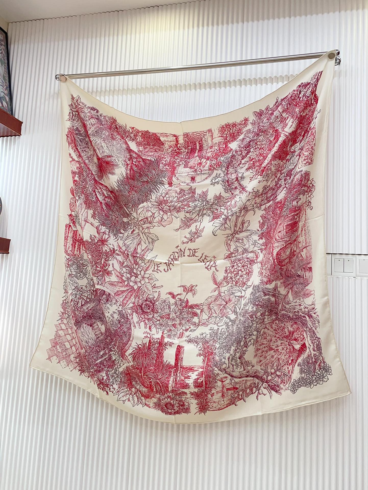 Le Jardin De Leila Au Bloc Shawl 135 CM In Pink Red Cashmere And Silk 316264