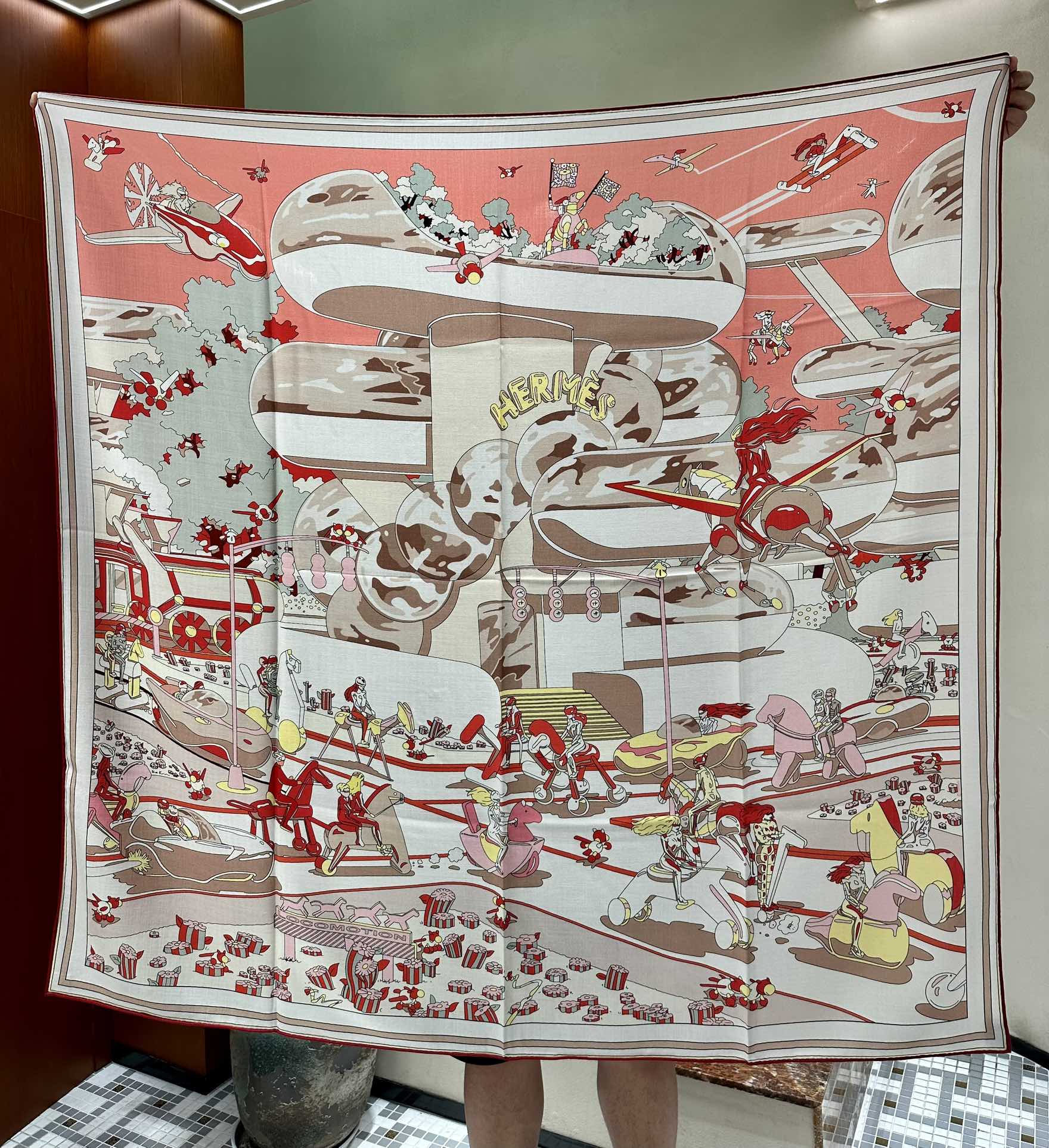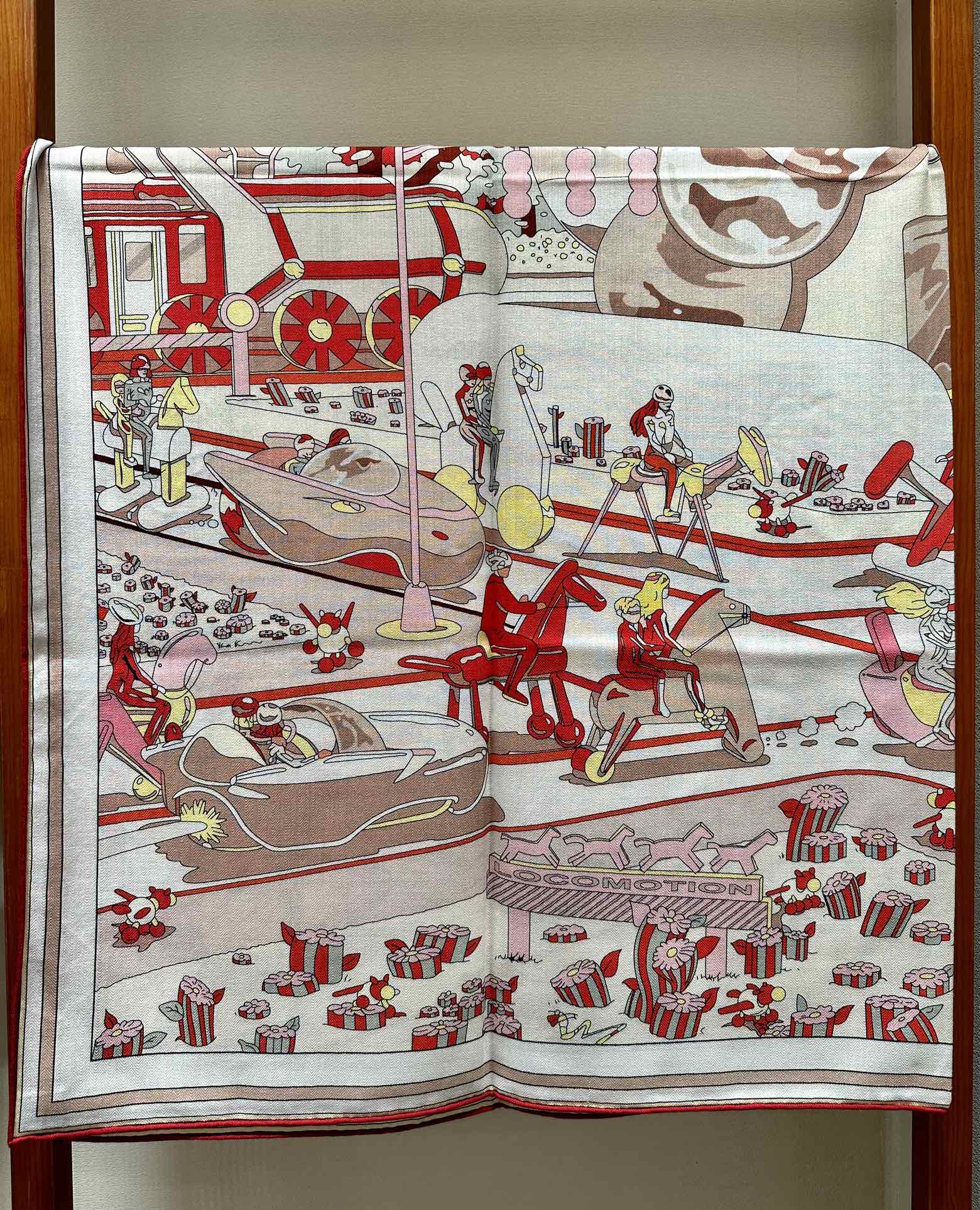 Locomotion Shawl 140 CM In Red Colorful Cashmere And Silk 384145