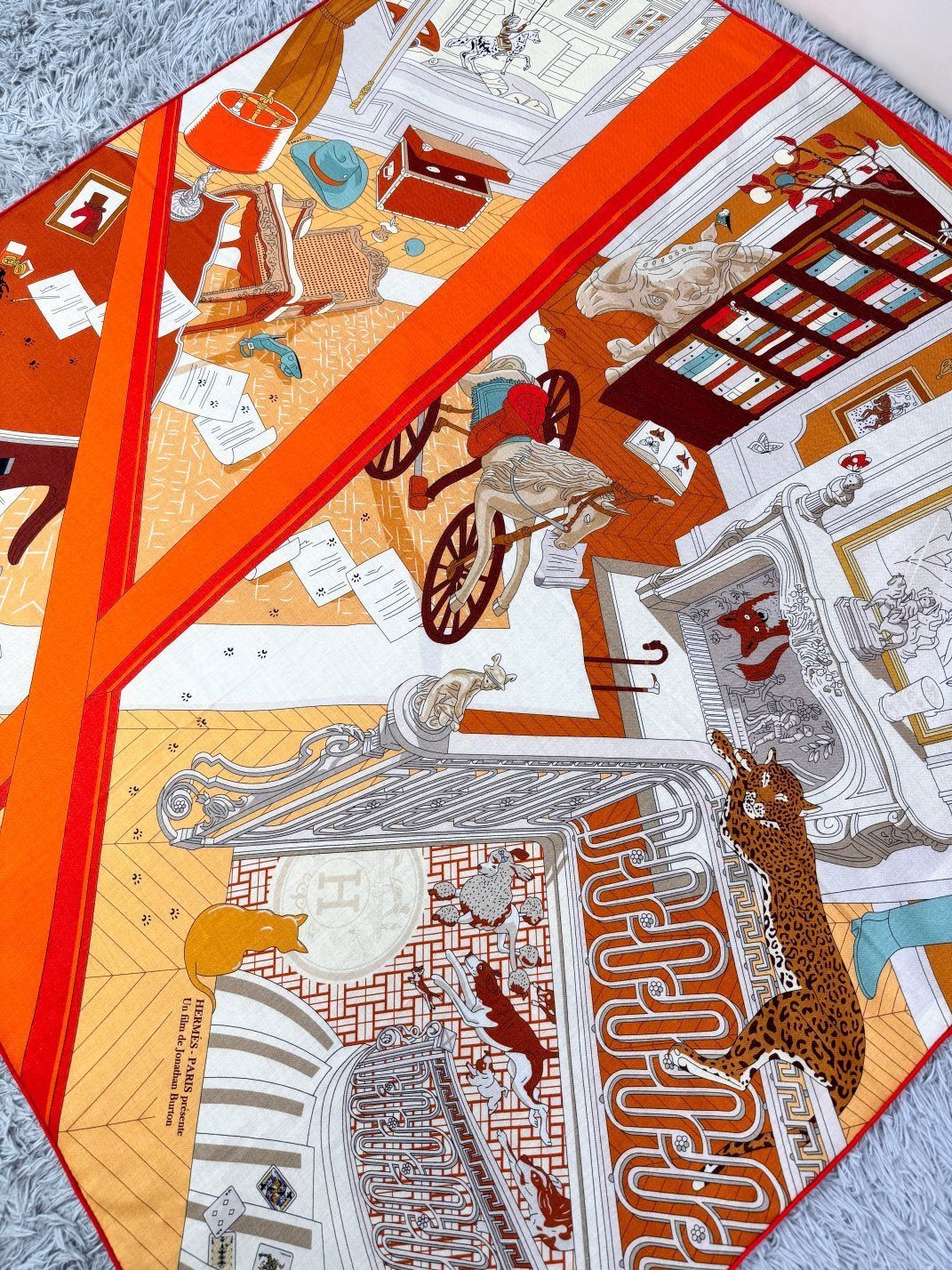 Mystere Au 24 Scarf 135 CM Yellow Orange Colorful Cashmere And Silk