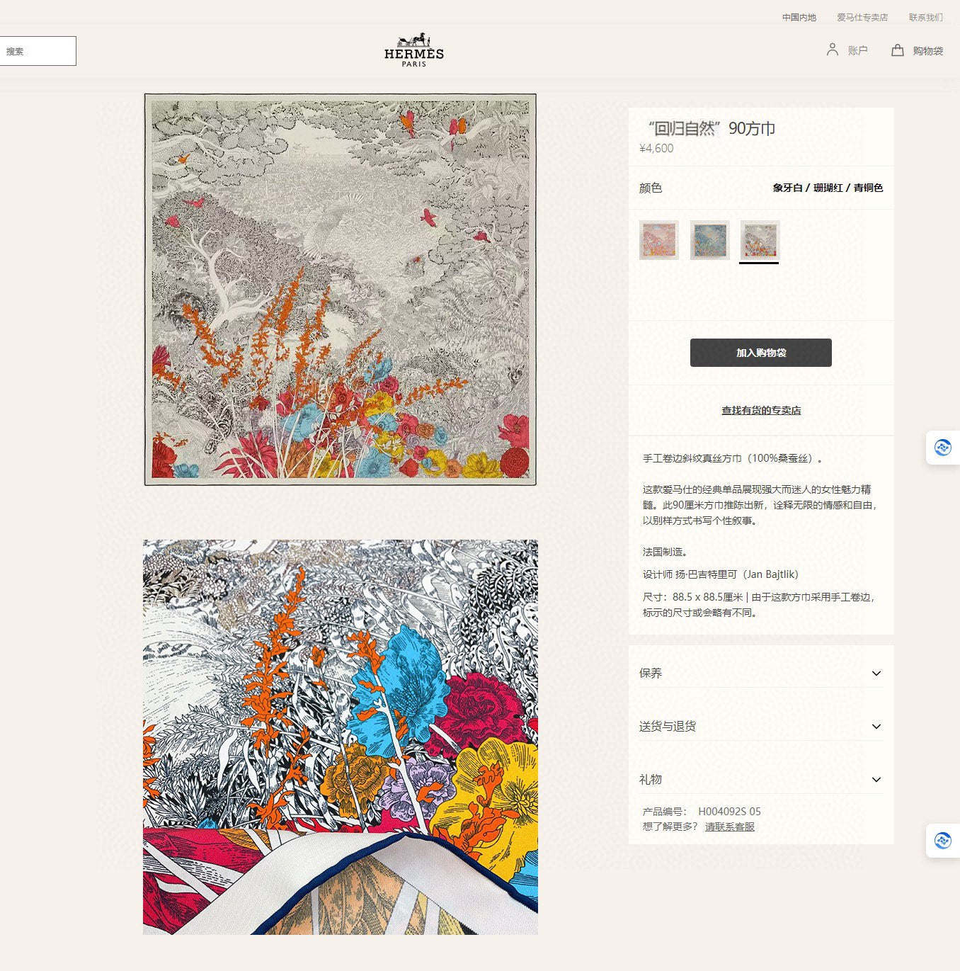 Retour A La Nature Shawl 90 CM In Grey Colorful Silk Twill 198583