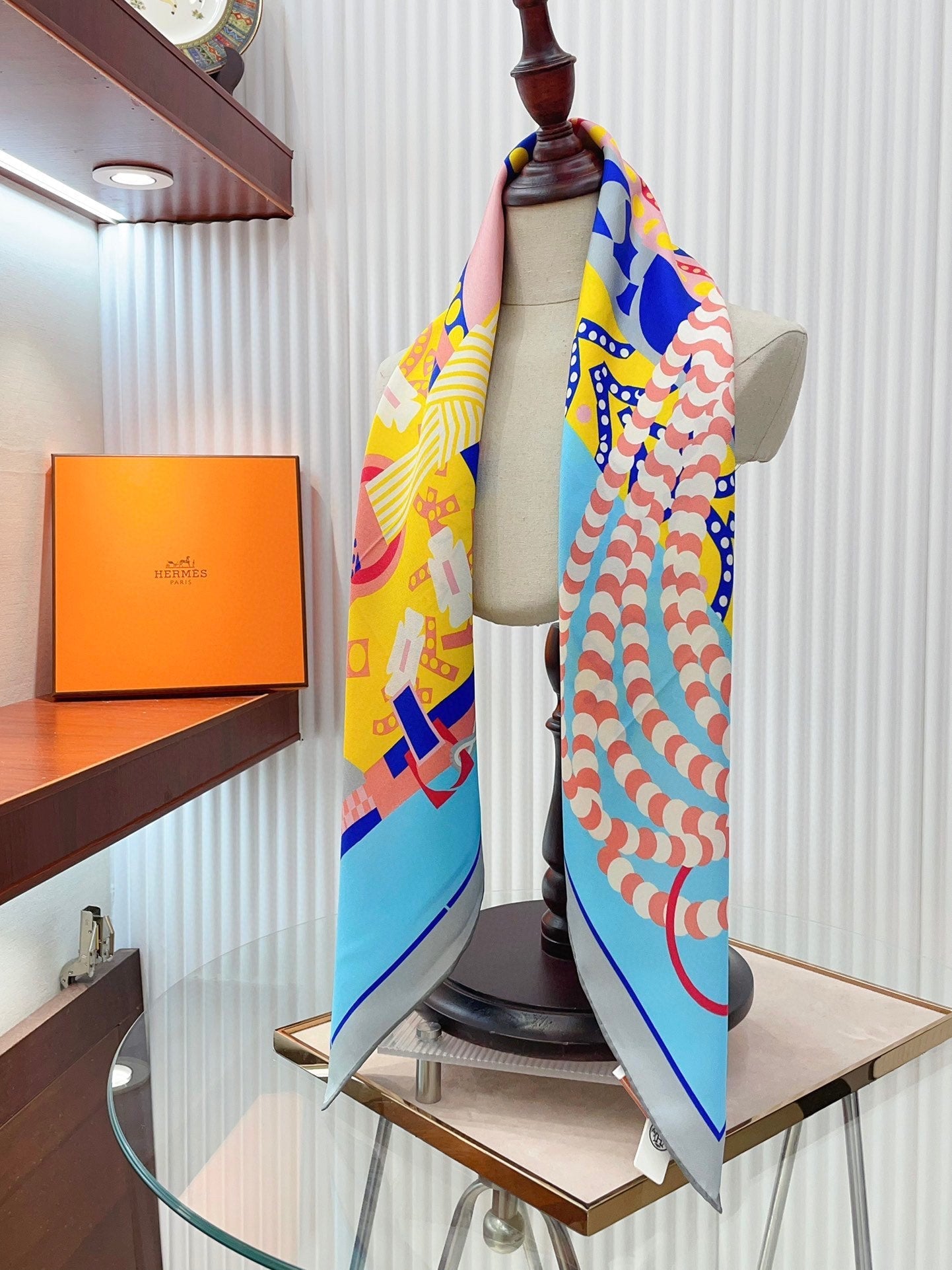 Silla De Gaucho Scarf 90 CM In Light Blue Colorful Silk Twill 231854
