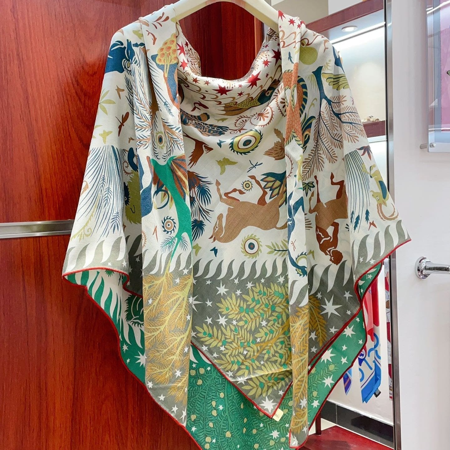 Sous Le Charme d'Orphee Double Face Scarf 140 CM In Colorful Cashmere And Silk 233127