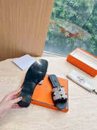 HM 25 Oran Sandal Black Calfskin White Denim