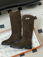 HM Jumping Boots Dark Brown Kelly Buckle Suede 423265