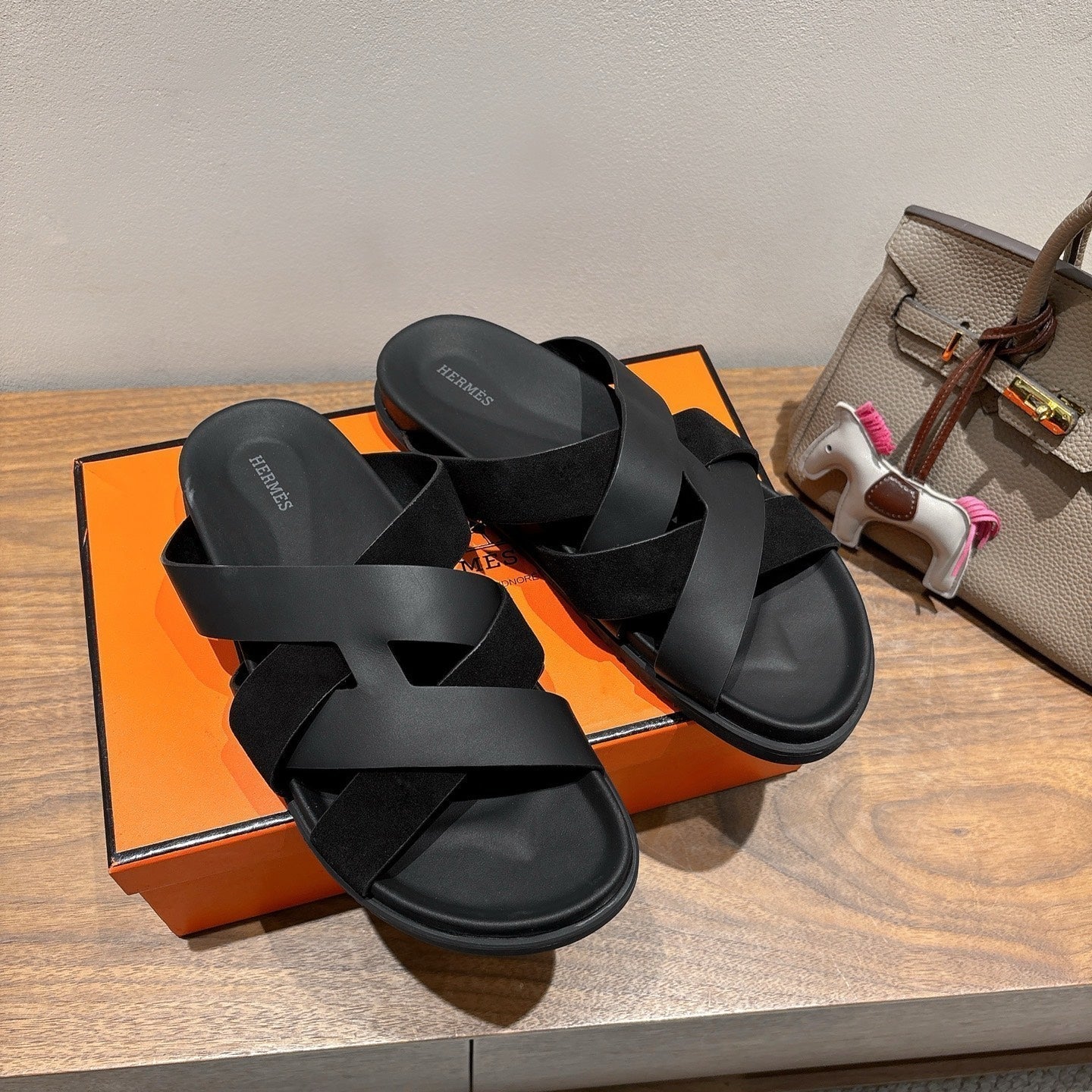 HM 25 Kazimir Sandal Black Calfskin Canvas