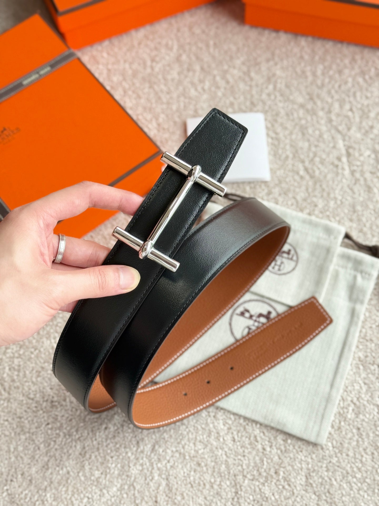HM H D' Ancre 38mm Belt Black Brown Leather 188231