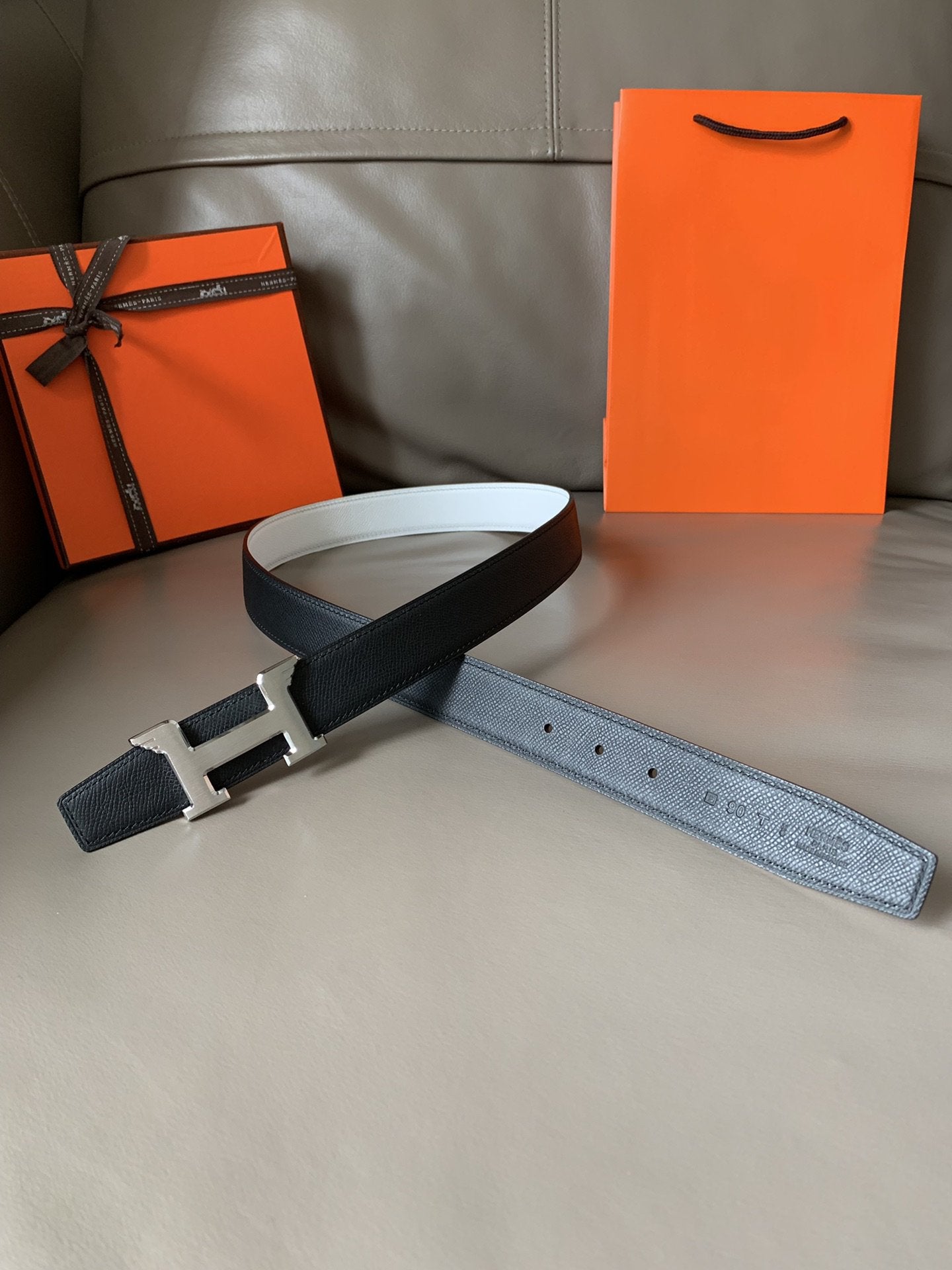 • H Buckle in permabrass plated metal.
