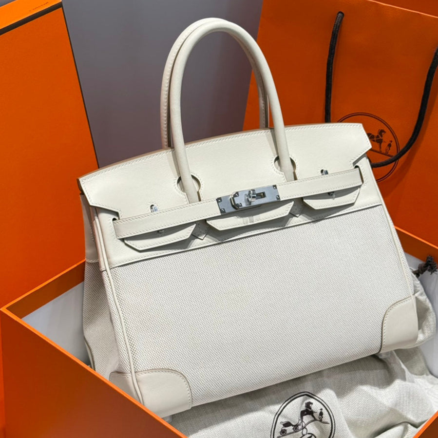 HM Birkin 30 Milkshake White Canvas with Swift Leather Silver Hardware 237310