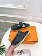 HM Feria Espadrille 20mm Black Calfskin And Handwoven Hemp Rope 967988
