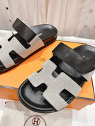 CHYPRE SANDAL BLACK LAMBSKIN AND SILVER DENIM