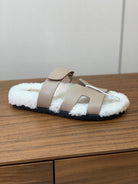HM Chypre Sandal Light Brown Mix White Wool And Cowhide Lining 984209