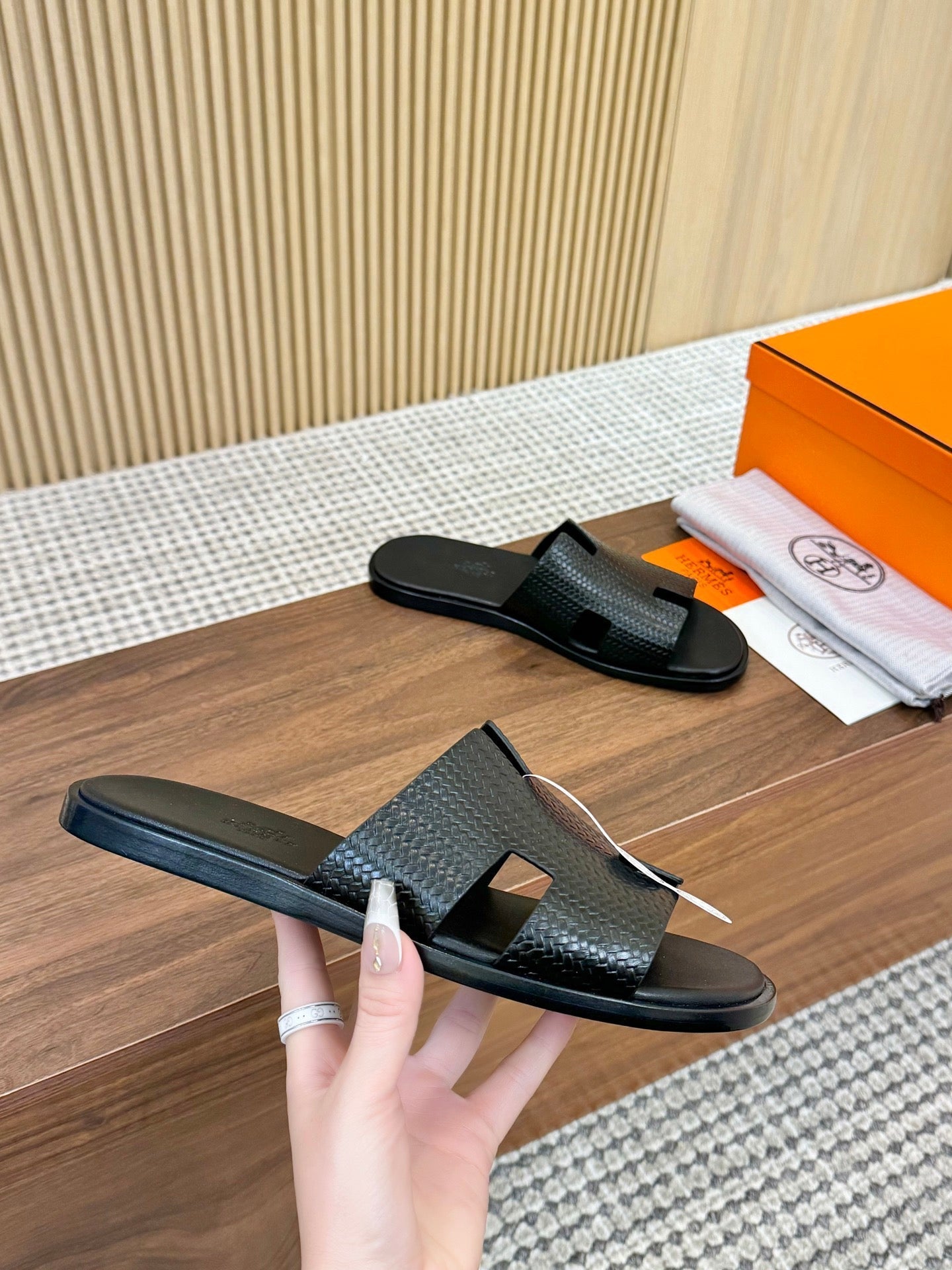 HM Izmir Sandal Black Rose Leather 294342