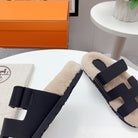 Chypre Sandal Beige shearling insole Black goatskin lining