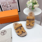 Chypre Sandal Beige shearling insole Light Brown Velvet leather lining