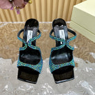 Jimmy Anise 105mm In Dark Green Pearl Studded Lambskin Mules 581534