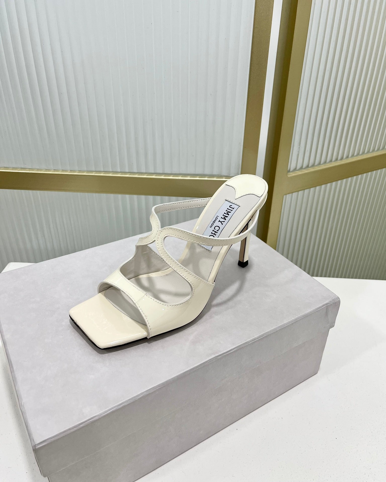 Jimmy Anise 85 In Ivory White Glossy Cowhide Mules 587692