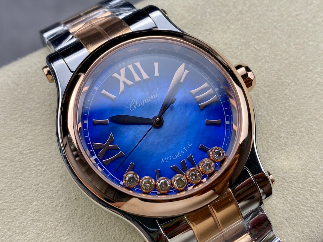 Happy Diamonds 36mm Pink Gold Deep Blue Dial