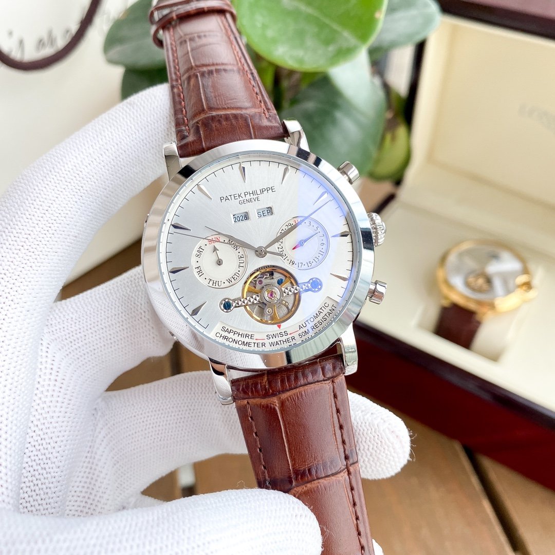 Rose Gold White PATEK ANNUAL CALENDAR 42MM TOURBILLON LEATHER STRAP Rose Gold Black PATEK ANNUAL CALENDAR 42MM TOURBILLON LEATHER STRAP Silver White PATEK ANNUAL CALENDAR 42MM TOURBILLON LEATHER STRAP Silver Black PATEK ANNUAL CALENDAR 42MM TOURBILLON LEATHER STRAP Gold BLack PATEK ANNUAL CALENDAR 42MM TOURBILLON LEATHER STRAP + 2 more