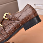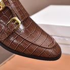GG Men's Double Monk Strap Loafer Brown Embossed Cowhide