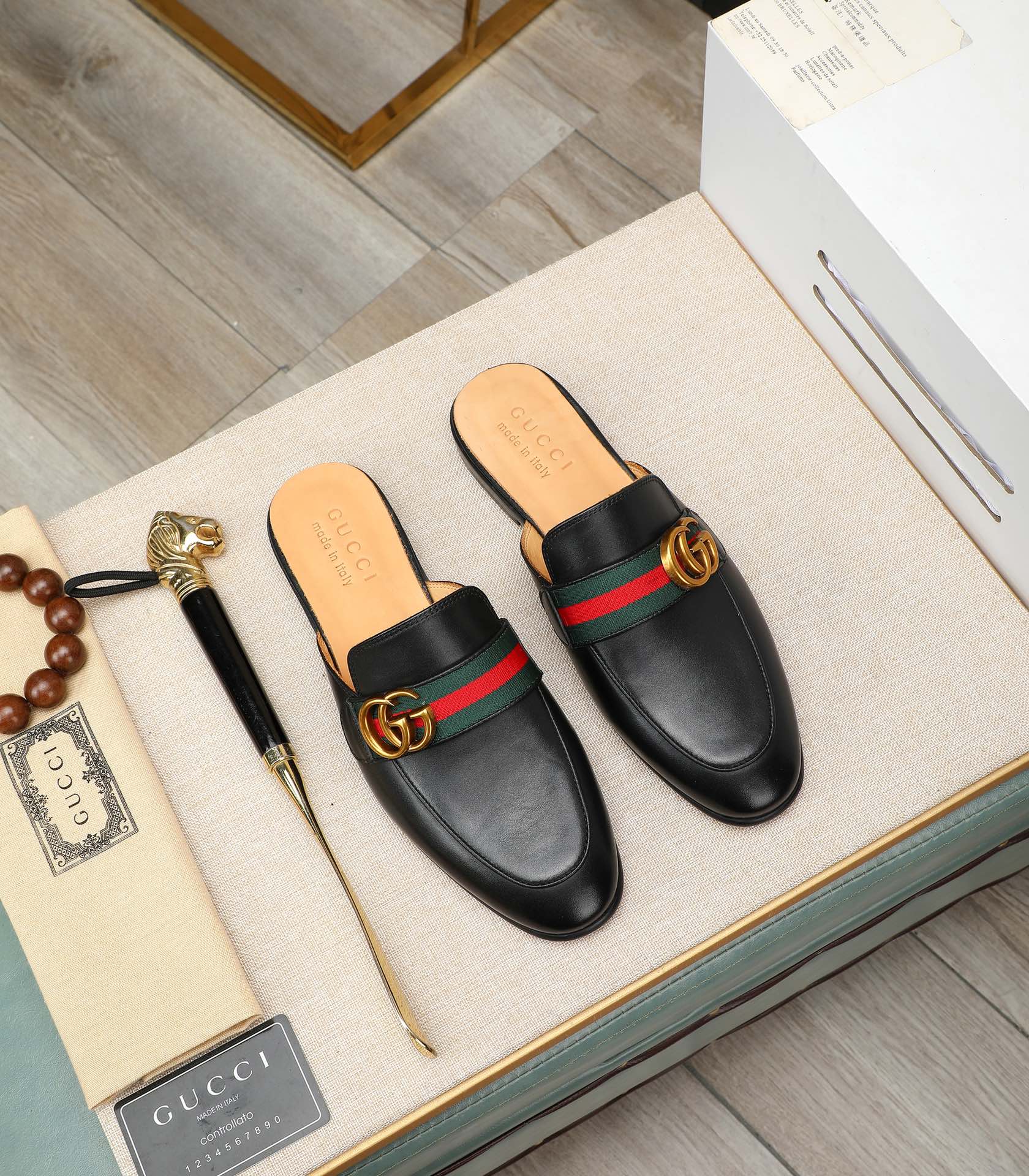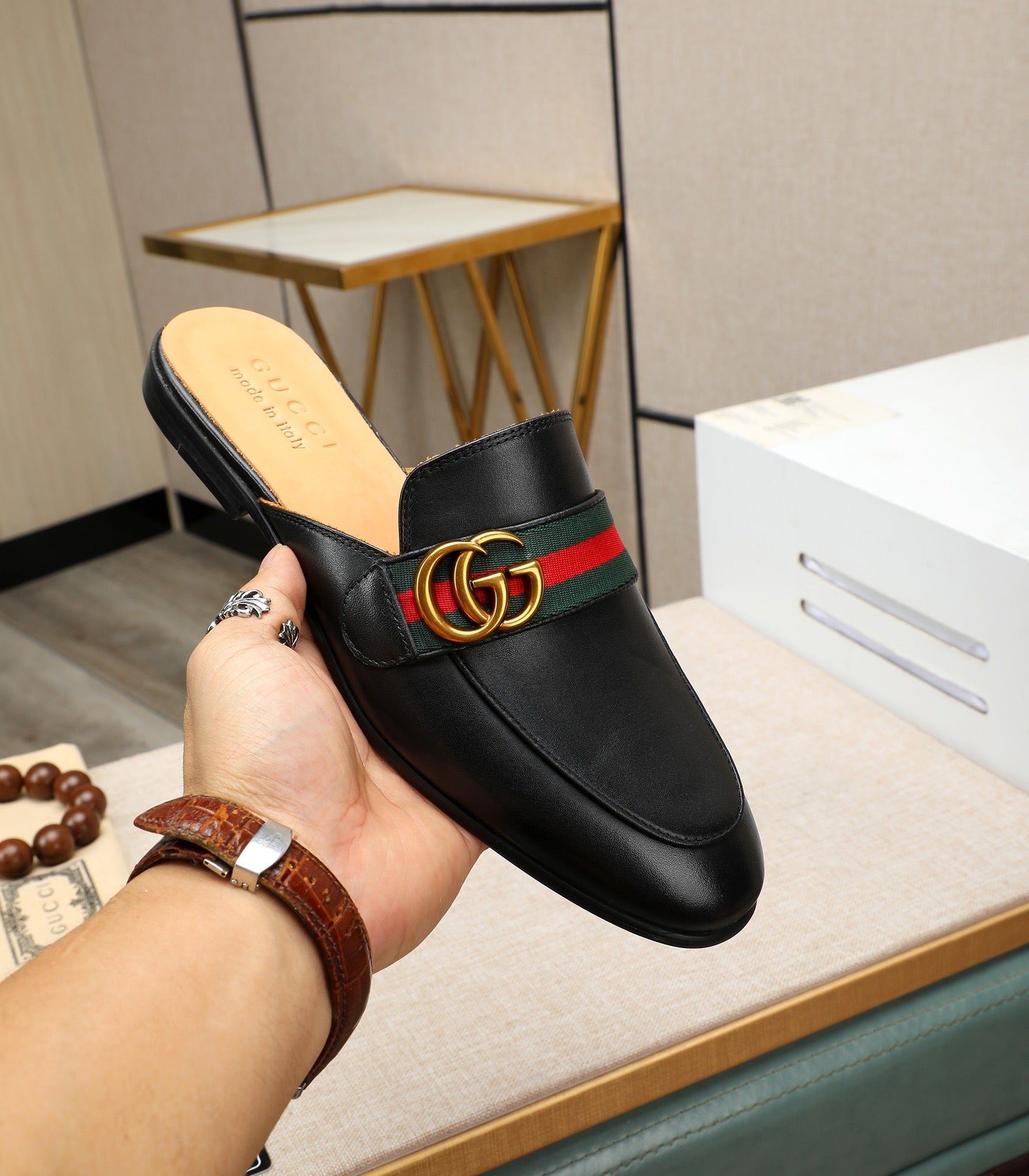 GG Men's Interlocking GG Mule Black Cowhide 111485