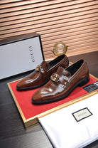 GG Men's Loafer Brown Embossed Cowhide 484786