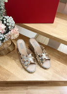Rockstud Crisscross Espadrilles 80mm Sandal Wedges Gold