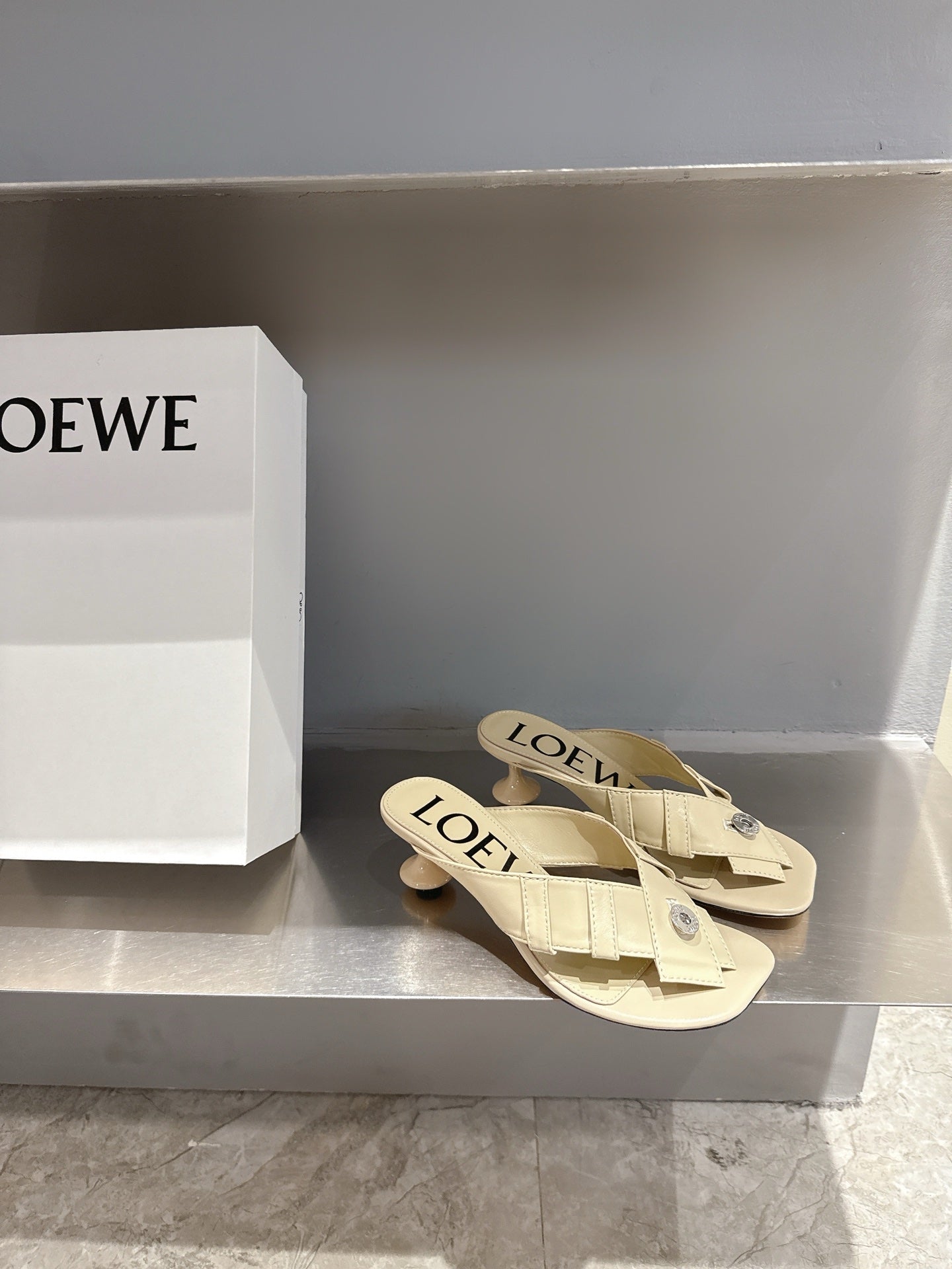 Loewe 25 Toy Panta Toe Thong 5cm Beige Sheepskin