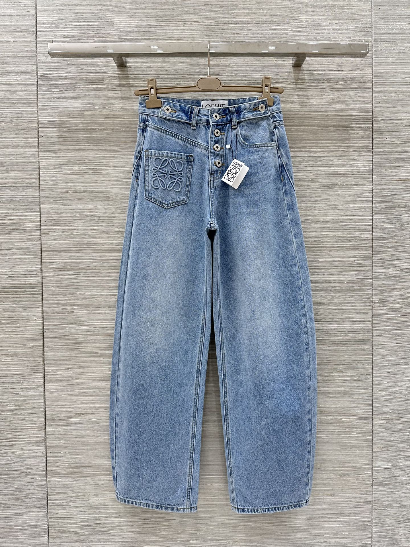 Loewe 25 Pocket Embossed Letter Straight Jeans Blue Cotton