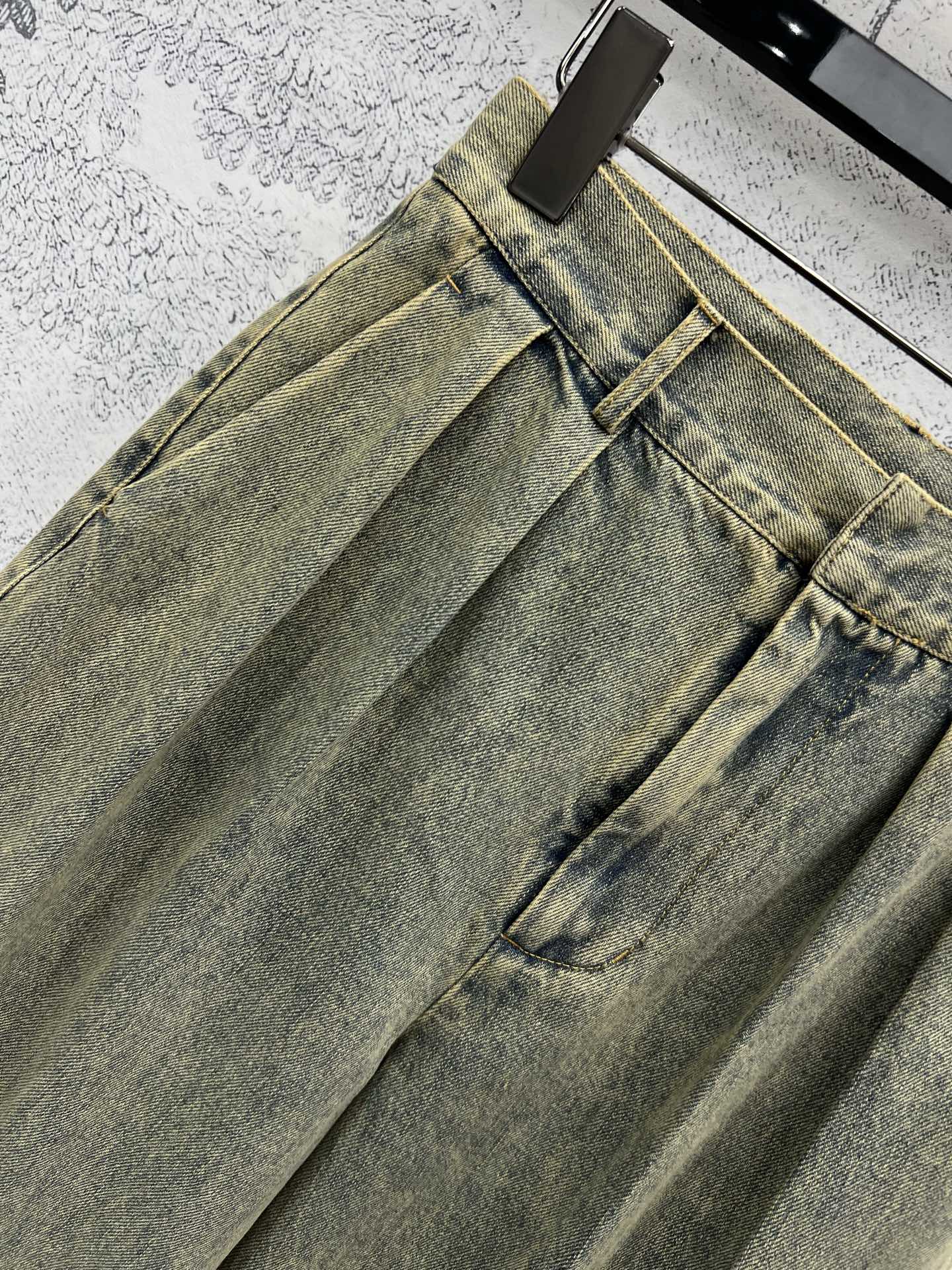 Loewe 25 Wide-leg Jeans Light Green-yellow Cotton
