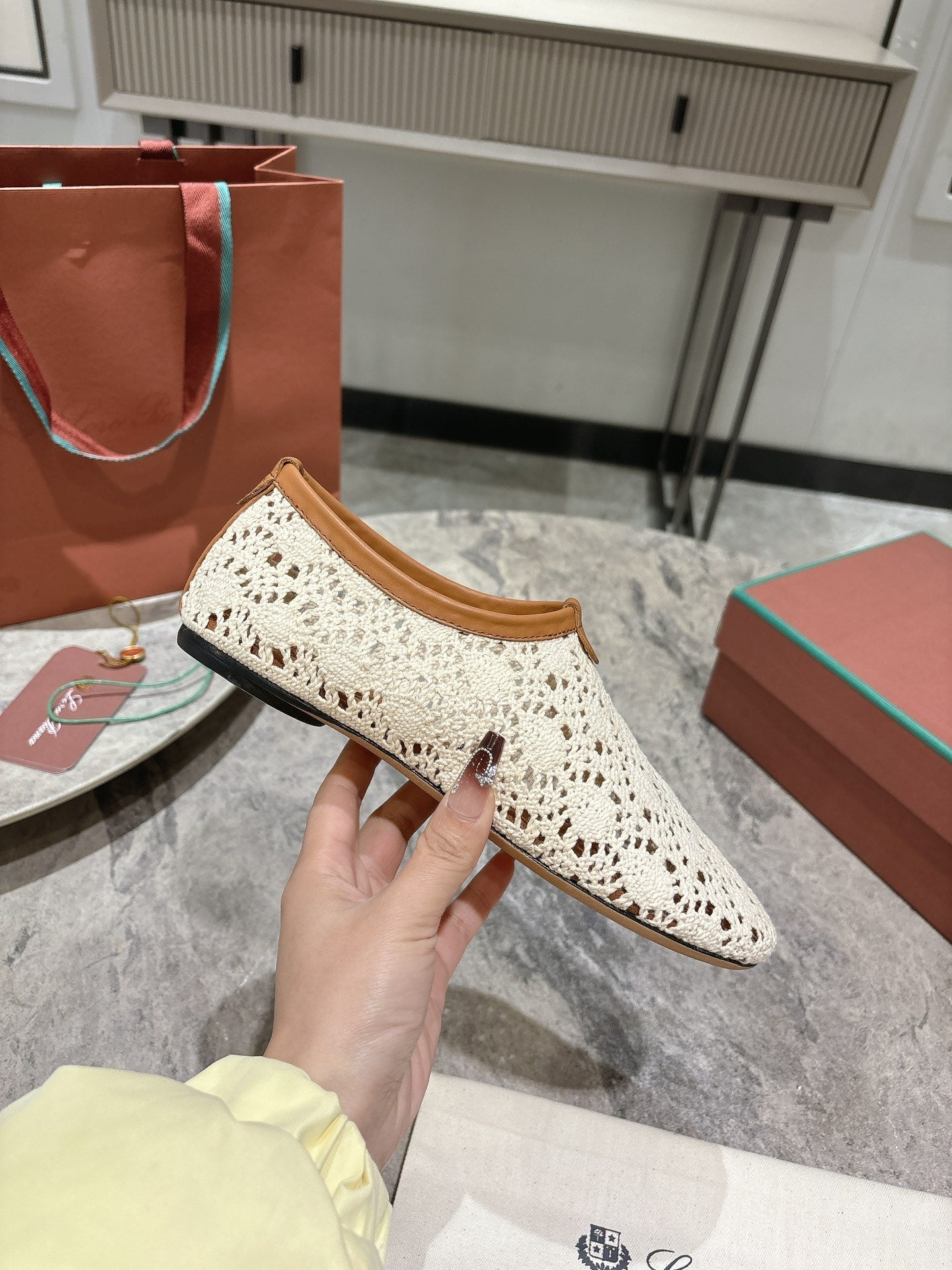 LP hollow knit ballet flats white fabric 379026