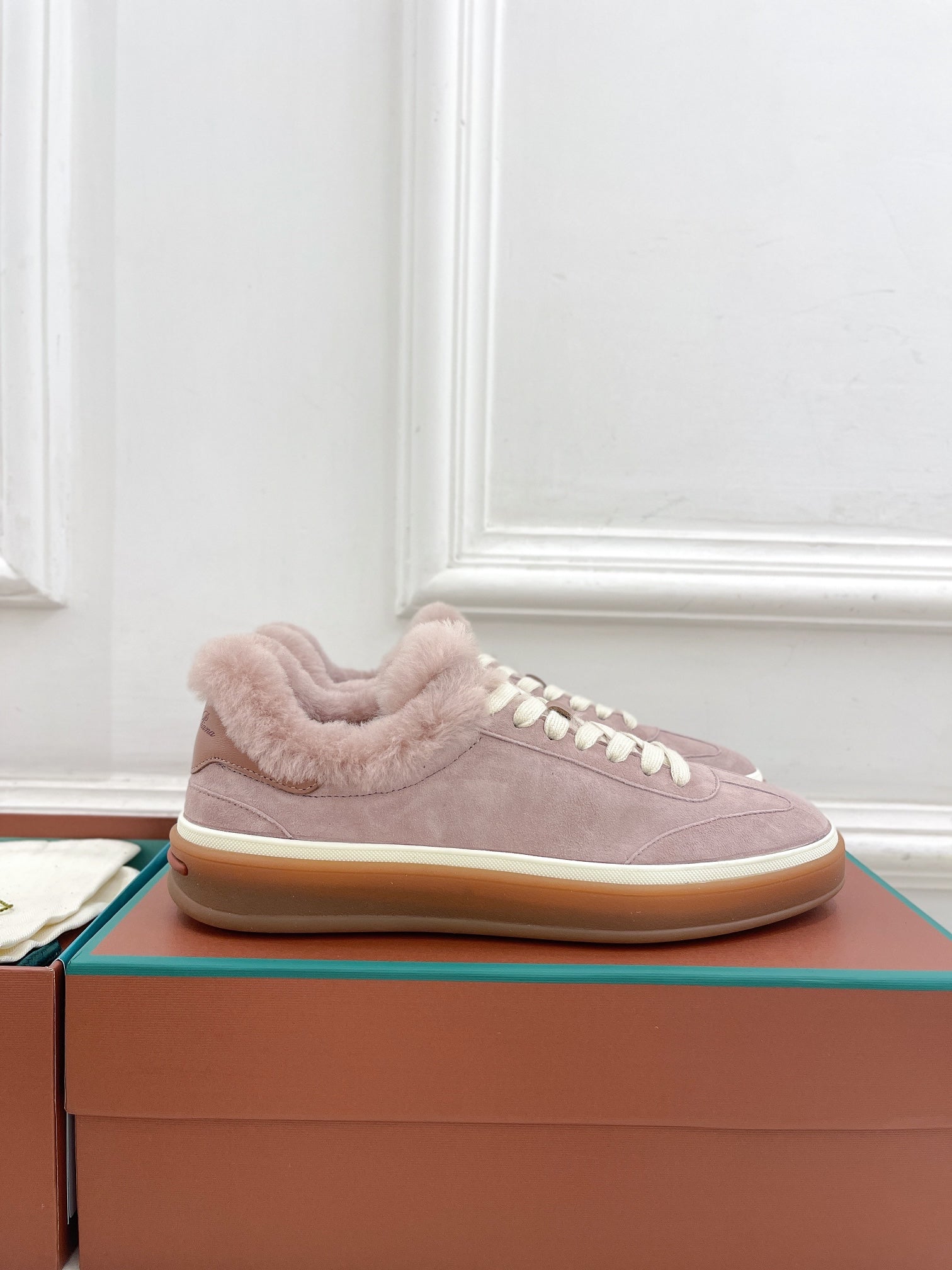 LP Tennis Walk Sneaker In White Grey Lambskin Lined With Wool Fleece 988264