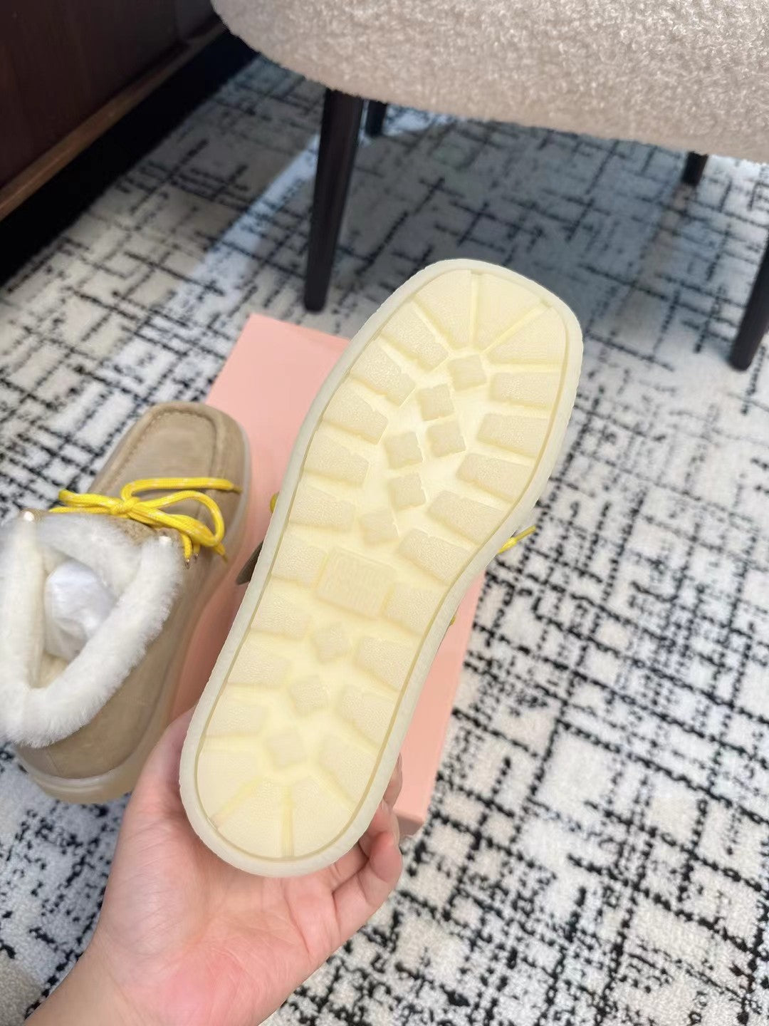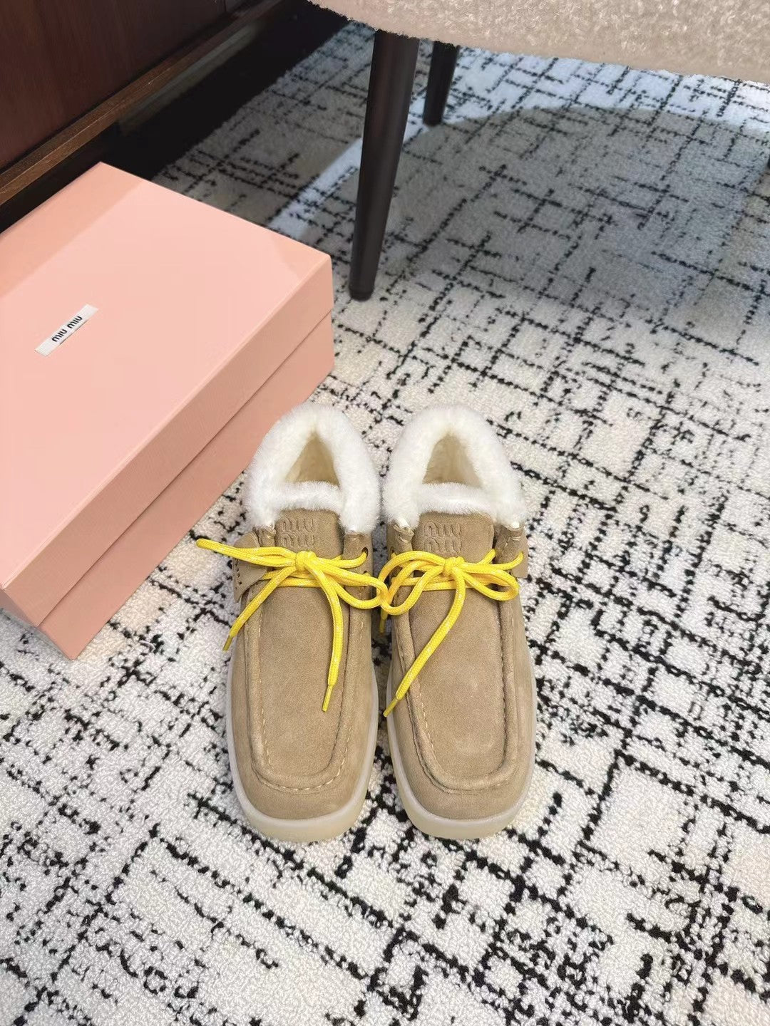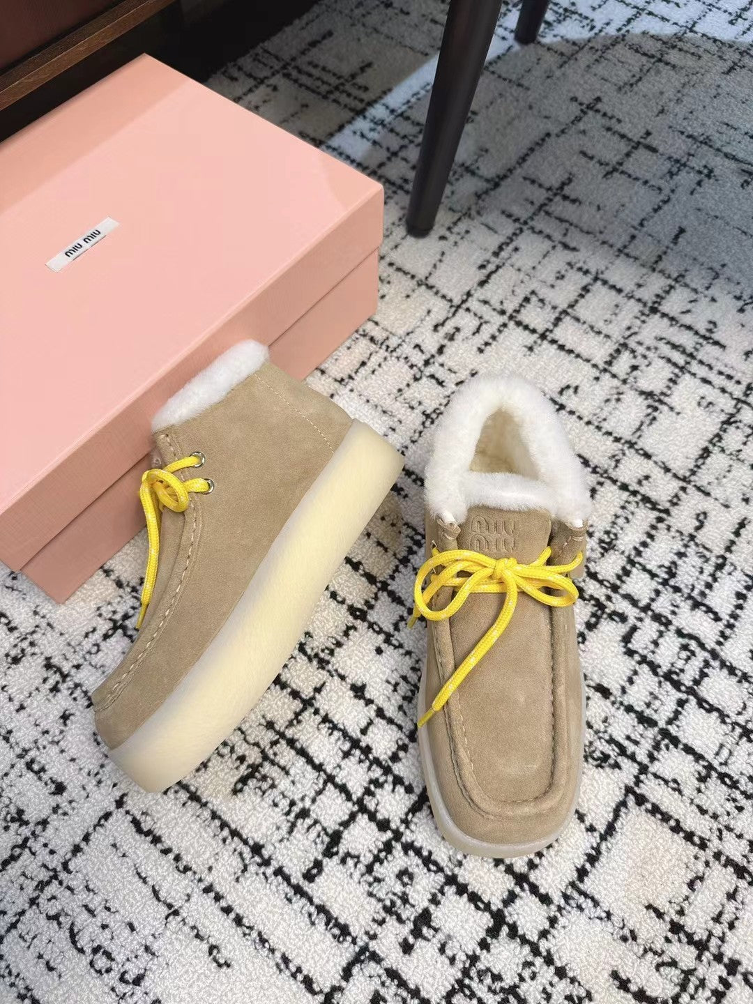 Miu Ankle Boots Light Brown Fleece Lining Cow Suede