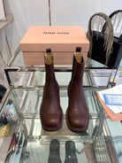 Miu Short Boots Brown Earth Vegetable Blended Cowhide