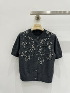 Miu Embroidered Cashmere Short Sleeve Cardigan 229364