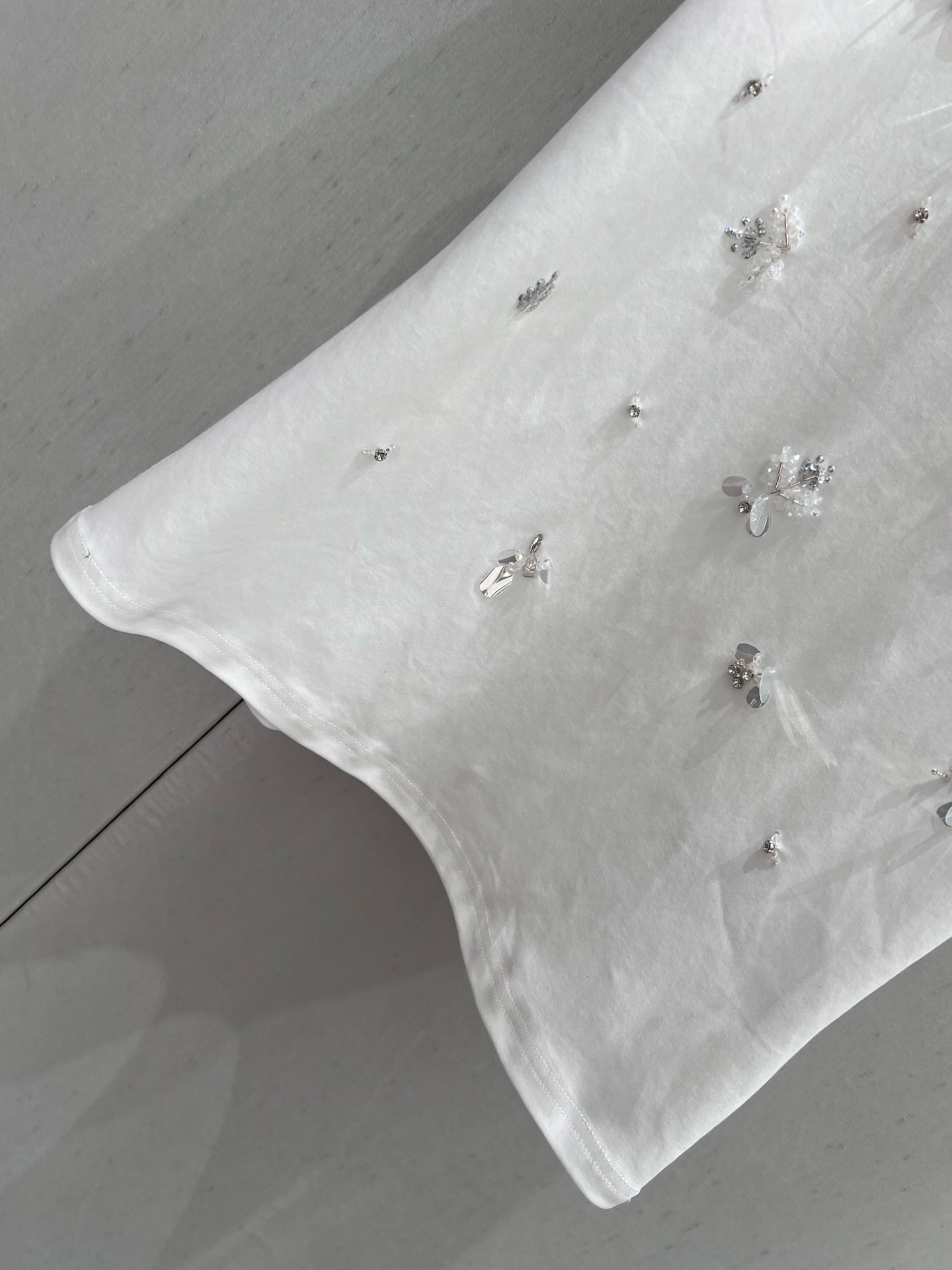 Miu Miu 25 beaded sequined flower short-sleeved T-shirt White Cotton 210497