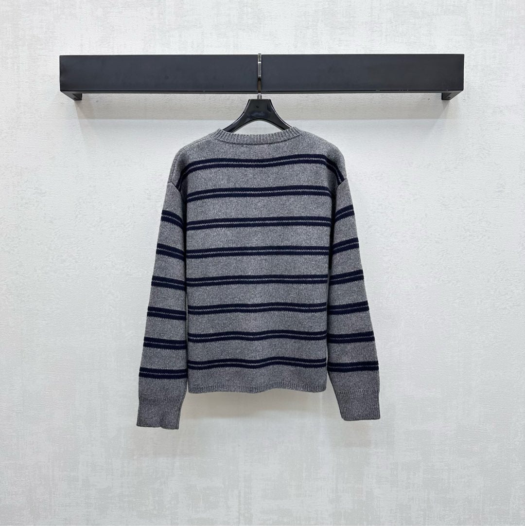 Miu Miu 25 Cardigan Grey Mix Navy Wool 303603