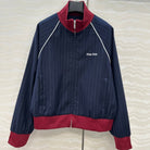 Miu Miu 25 Navy Blue Striped Jacket Polyester