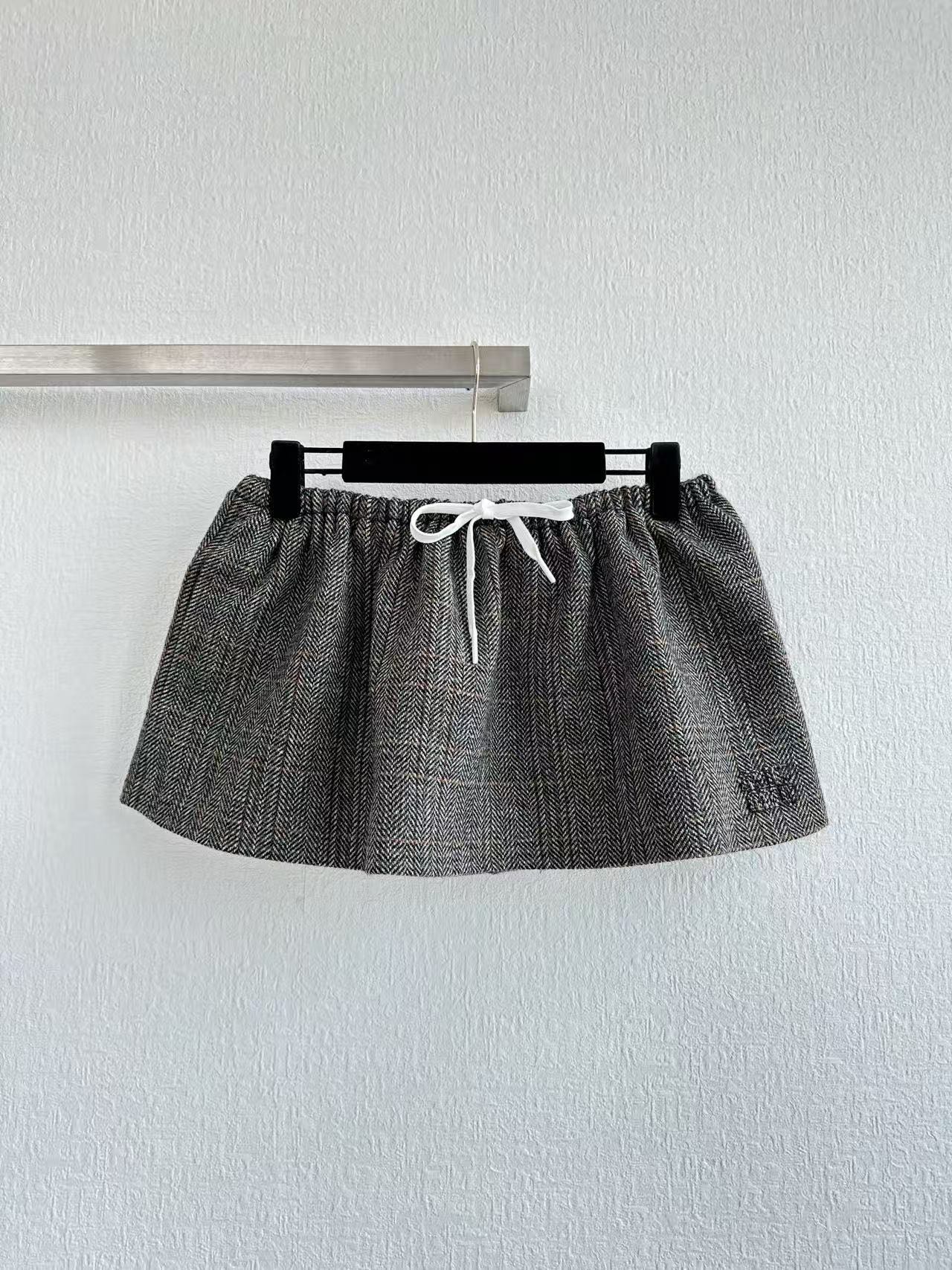 Miu Miu 25 Patterned Rope Skirt Gray Wool Viscose