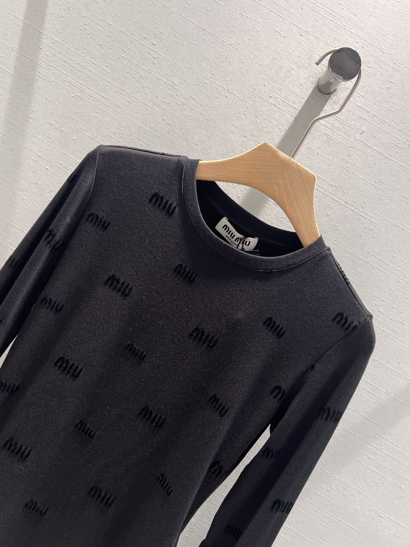Miu Miu Long Sleeve T-shirt Black Cotton