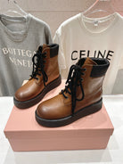 Miu Lace-Up Boots Vintage Brown Waxed Calfskin
