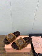Miu Slippers Caramel Brown With Brown Lettering Pure Wool