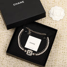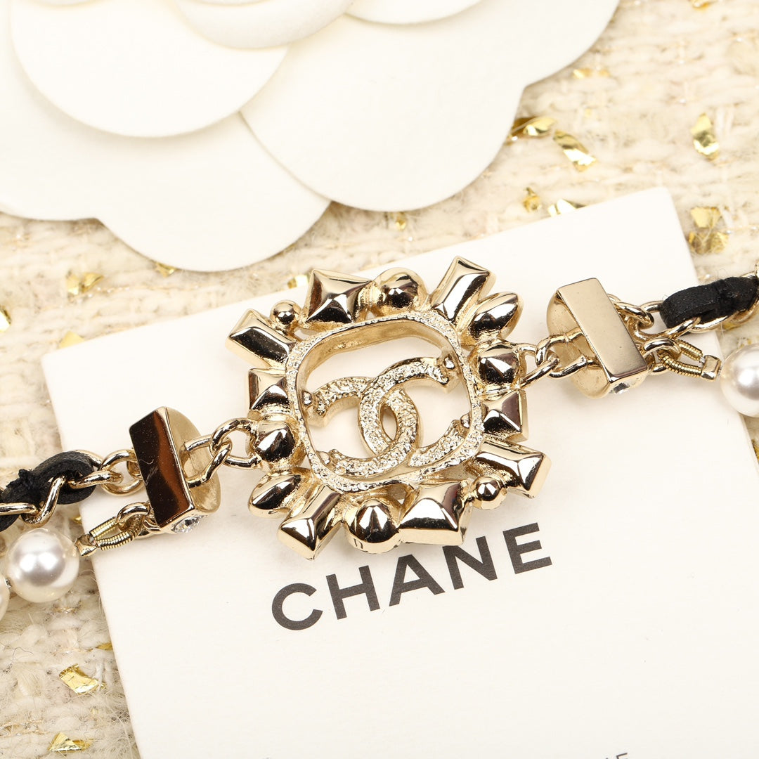 CHANE PEARLS AND LEATHER STRAPS GOLD NECKLACE TYPE 2