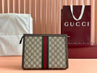Gucci Ophidia 27cm Clutch Ebony Brown Canvas Leather 239914