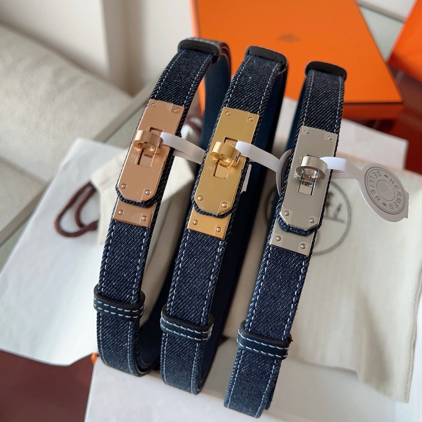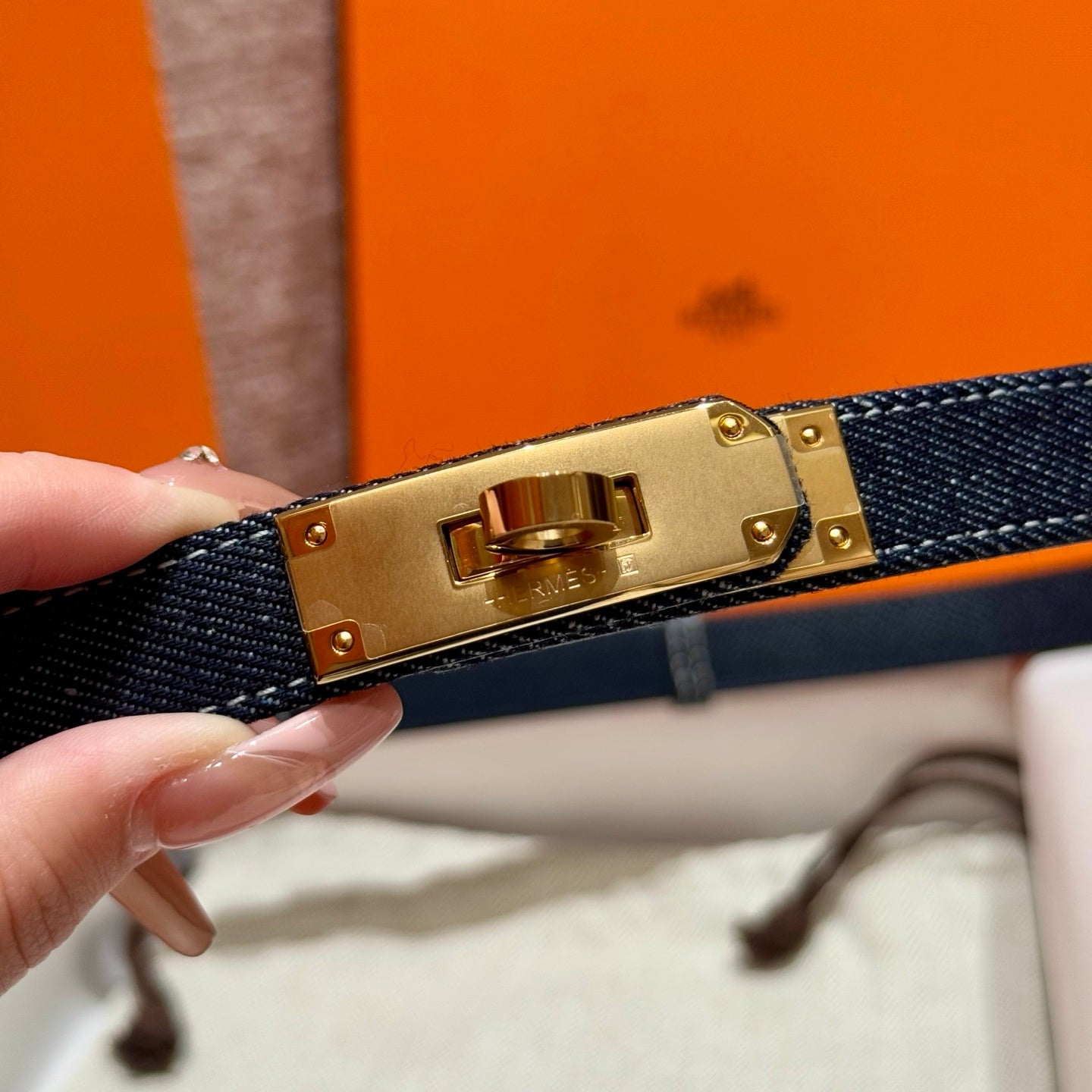 HM Kelly Belt 18mm Dark Blue Canvas Epsom Leather