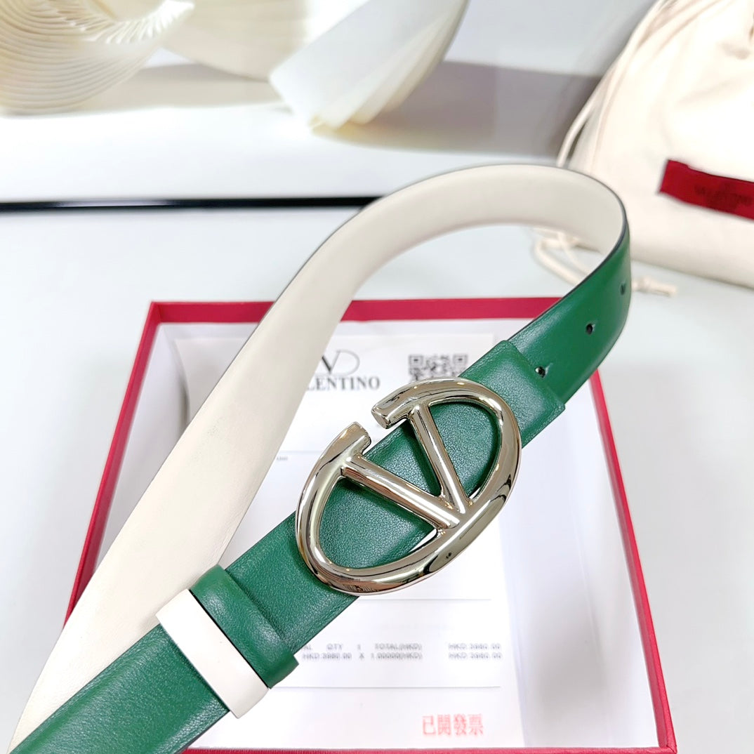 The Bold Edition Reversible Belt 30mm Green White Calfskin Silver Buckle