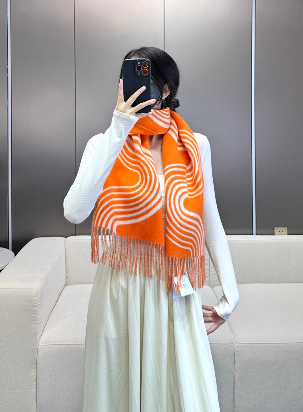 Scarf 180 CM Orange Mix Light Beige Cashmere