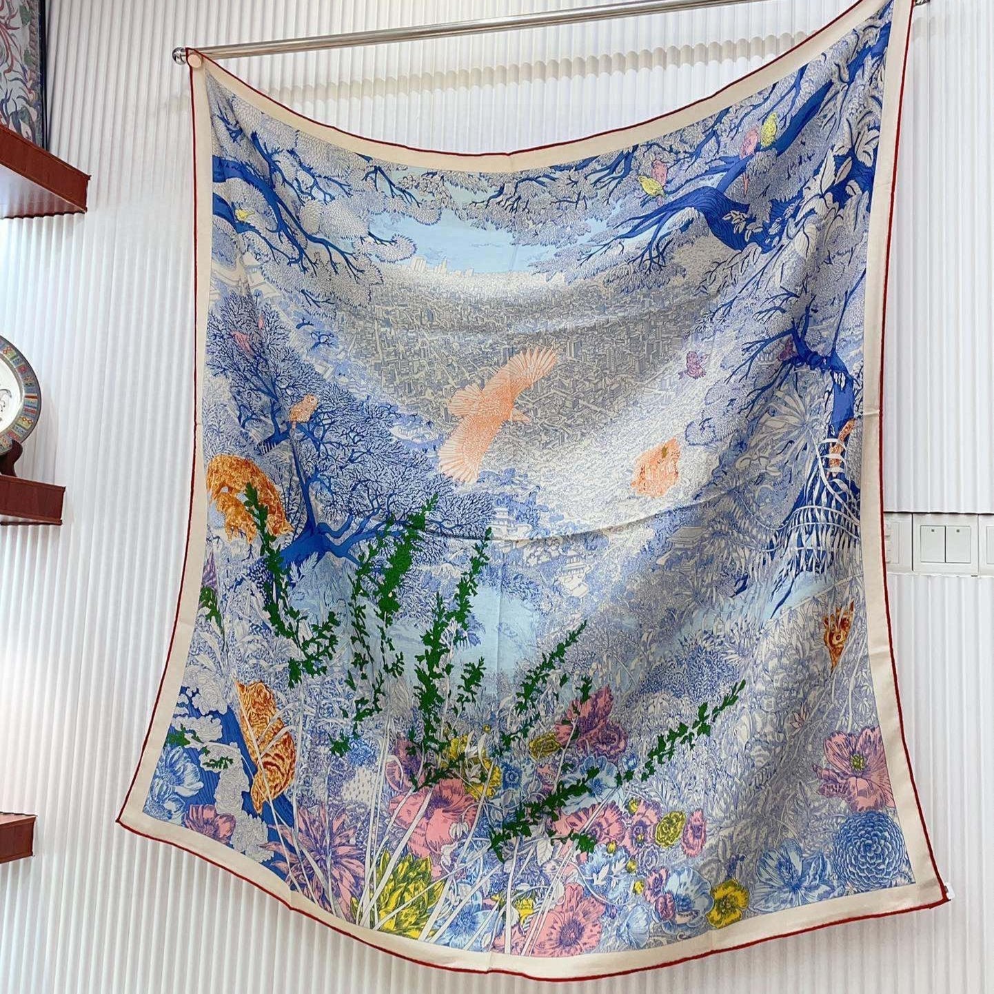 Square Scarf 140CM In Dakr Blue Colorful Cashmere And Silk
