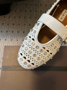 Alaia 25 Vienne With Strass Ballet Flats White Lambskin 303721