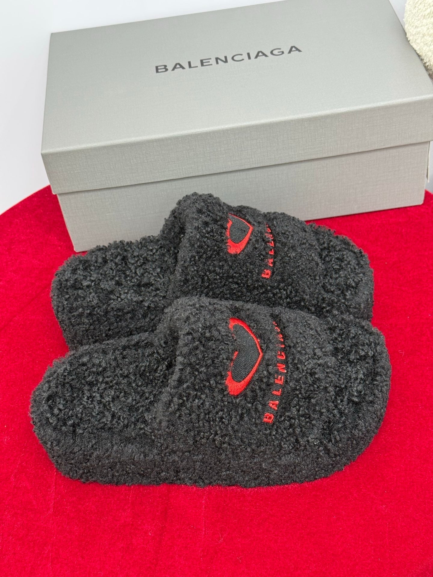 Balenciaga 25s slippers black red wool 467706