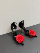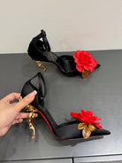 CC 25 Flower Rose Pumps Black Silk 337164